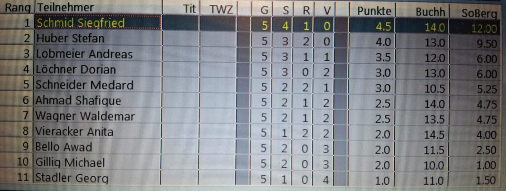 Abschlußtabelle 2025 Gratulation an Siegfried Schmid dem alten und auch neuen Stadtmeister des SC Beilngries